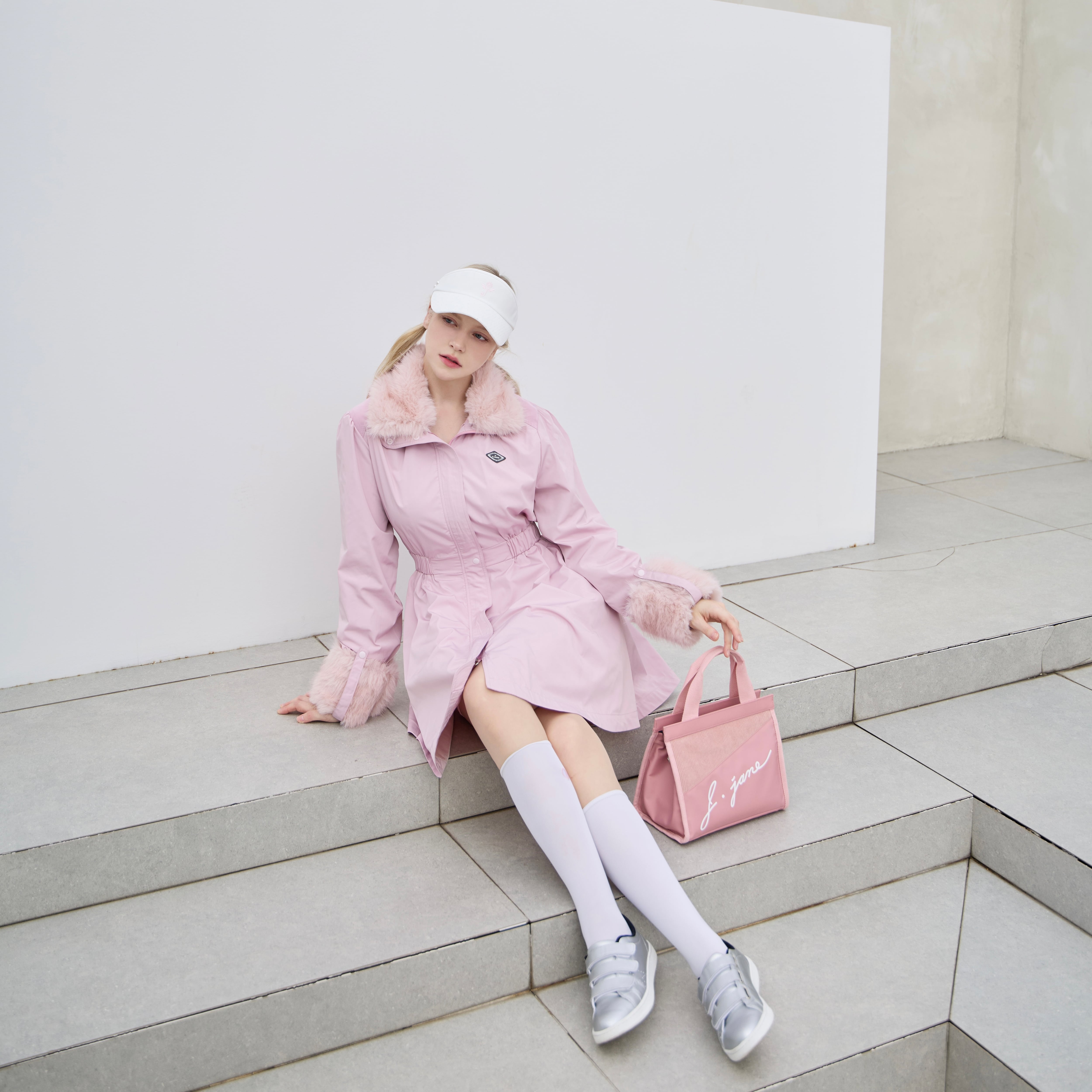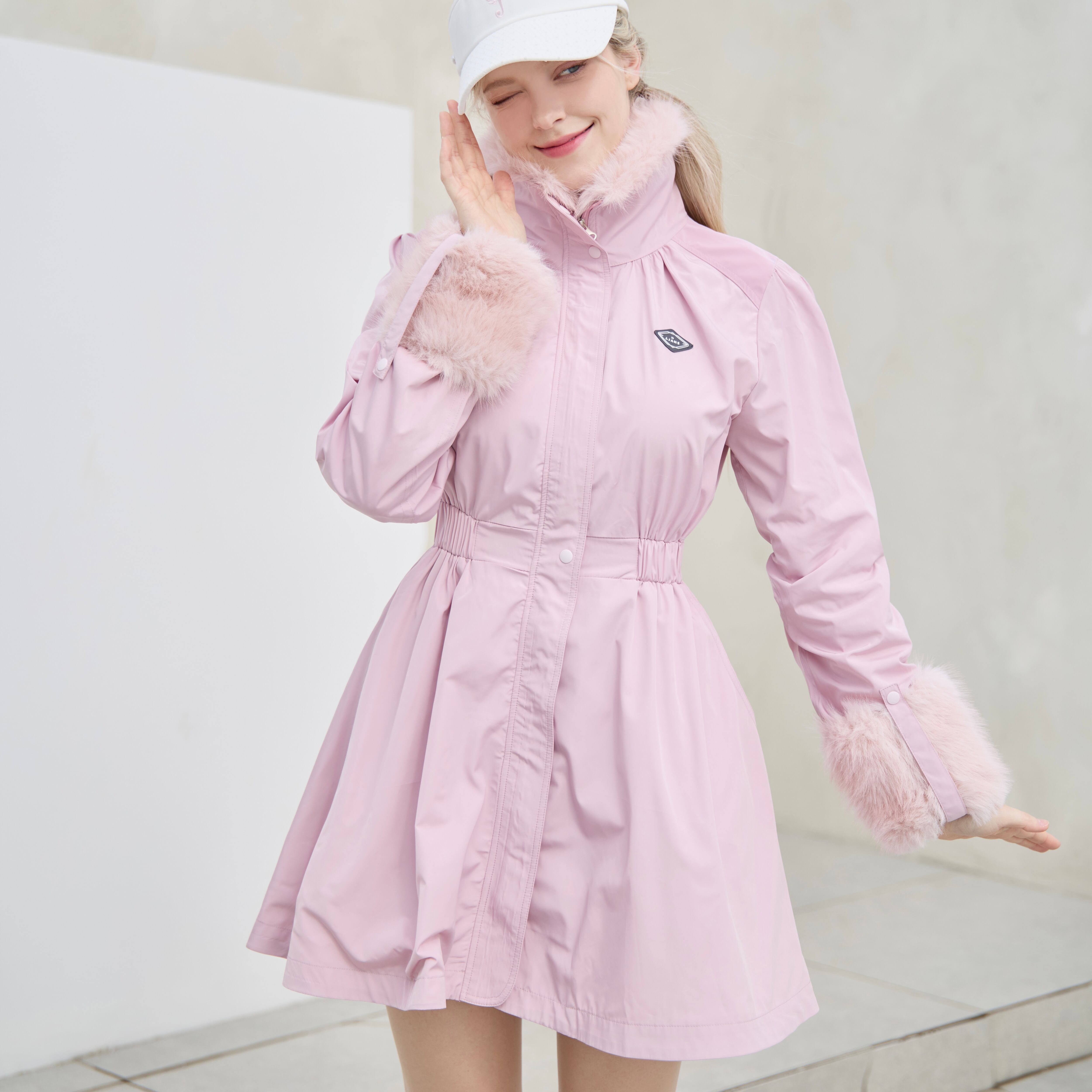 4-way fur windbreaker dress Transformable windbreaker Dress(Pink)