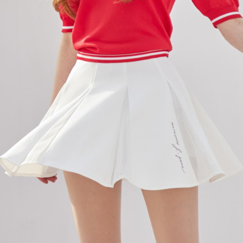 Flare Mesh Contrast Skirt(White)